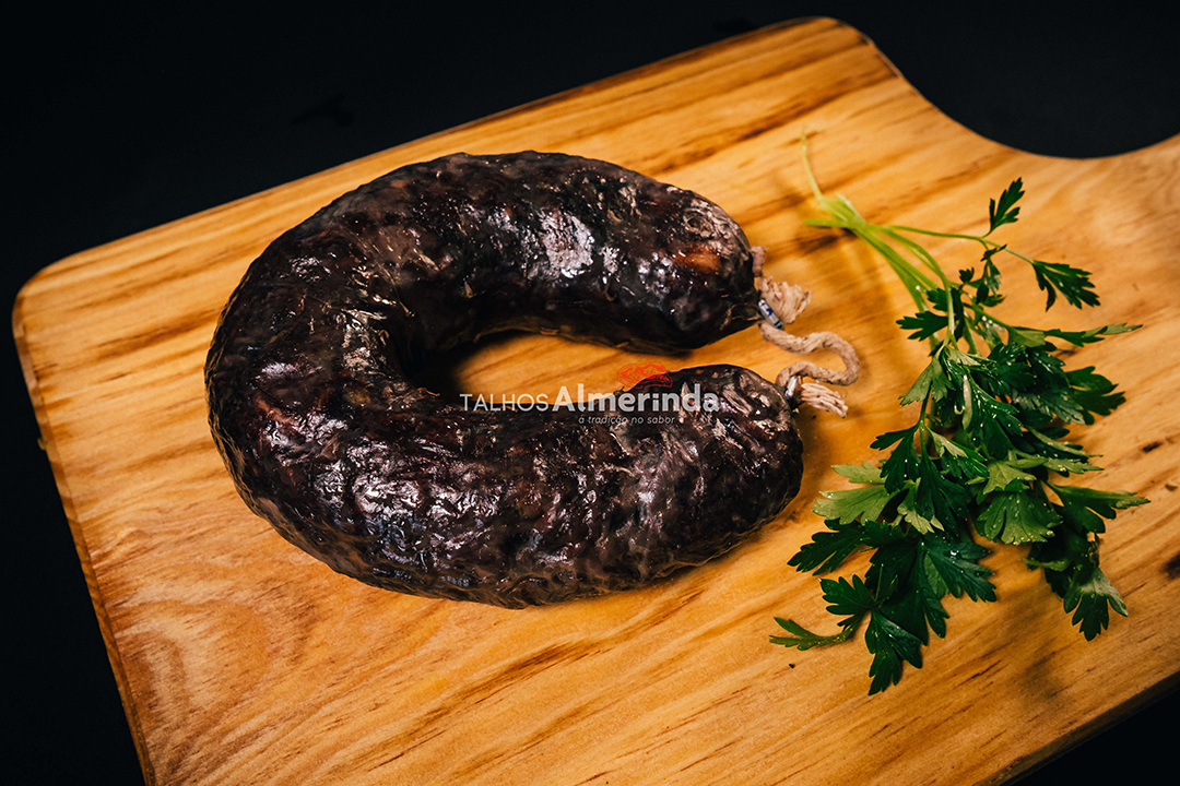 Ingredientes:Carne de suíno (origem: Portugal), cebola, arroz (20%), sangue de suíno, VINHO (SOLFITOS), sal, salsa, especiarias (cravinho, cominhos) e tripa de suíno.