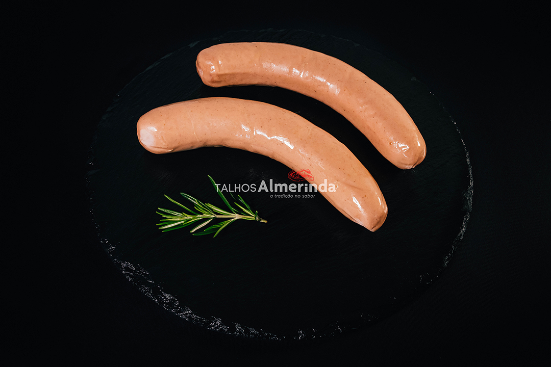 Ingredientes: Carne de suíno (origem: Portugal), sal, preparado de especiarias (pimenta, coentros, gengibre, noz-moscada, paprica, dextrose, intensificador de sabor: E621, extrato de especiarias), açúcar, preparado (emulsionantes: E450, E451, açúcares, cloreto de sódio, antioxidantes: E301, E331), sal nitritado (cloreto de sódio, conservante: E250, antioxidante: E331), pimenta, antioxidantes: E300, E301, E331, açúcares, conservante: E262 ii) e tripa de suíno.